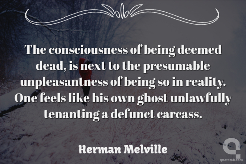 The consciousness of being deemed dead, is next to the presumable unpleasantness of being so in reality. One feels like his own ghost unlawfully tenanting a defunct carcass.