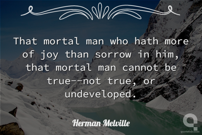 That mortal man who hath more of joy than sorrow in him, that mortal man cannot be true--not true, or undeveloped.