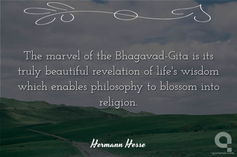 The marvel of the Bhagavad-Gita is its truly beautiful revelation of life's wisdom which enables philosophy to blossom into religion.