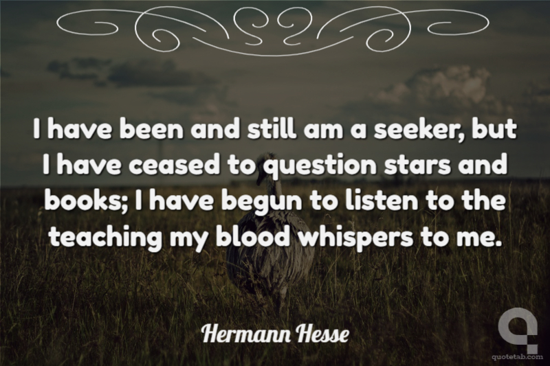 I have been and still am a seeker, but I have ceased to question stars and books; I have begun to listen to the teaching my blood whispers to me.