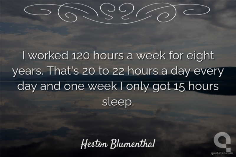 I worked 120 hours a week for eight years. That's 20 to 22 hours a day every day and one week I only got 15 hours sleep.