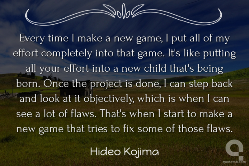 Every time I make a new game, I put all of my effort completely into that game. It's like putting all your effort into a new child that's being born. Once the project is done, I can step back and look at it objectively, which is when I can see a lot of flaws. That's when I start to make a new game that tries to fix some of those flaws.