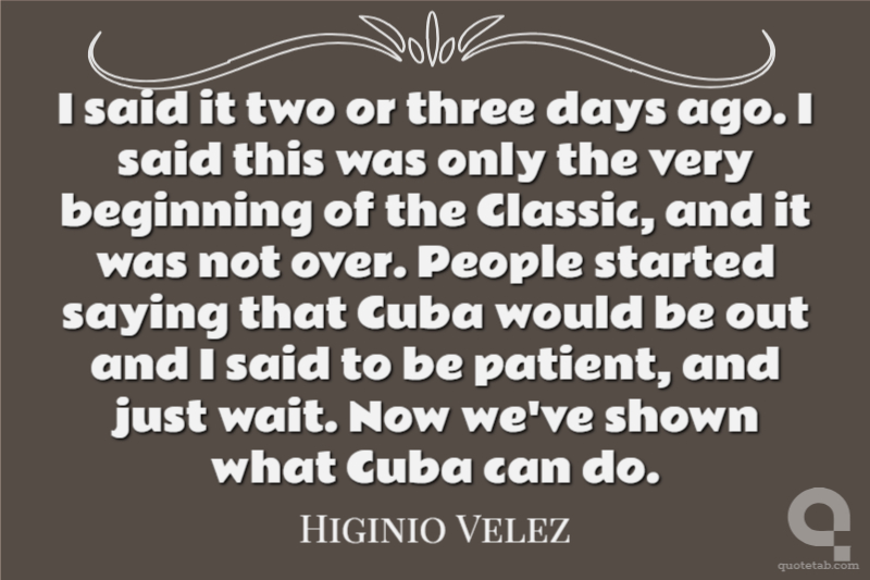 I said it two or three days ago. I said this was only the very beginning of the Classic, and it was not over. People started saying that Cuba would be out and I said to be patient, and just wait. Now we've shown what Cuba can do.