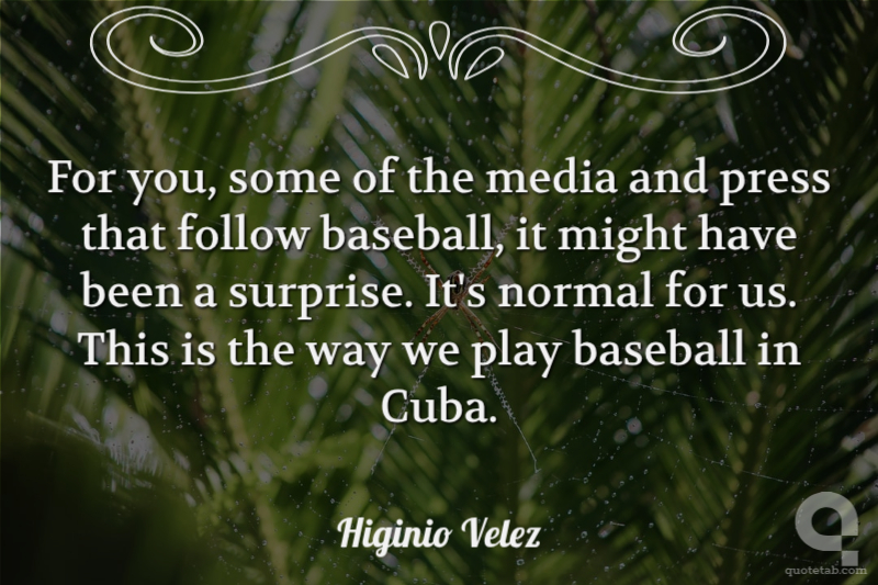 For you, some of the media and press that follow baseball, it might have been a surprise. It's normal for us. This is the way we play baseball in Cuba.