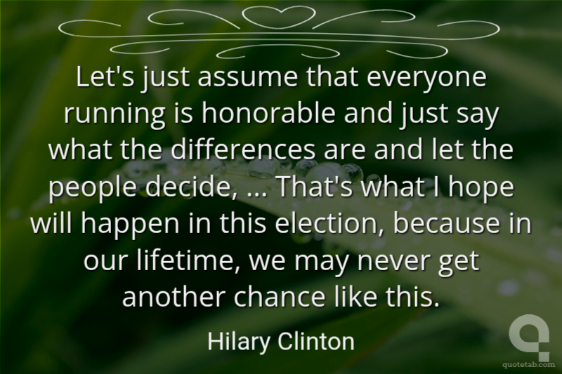 Let's just assume that everyone running is honorable and just say what the differences are and let the people decide, ... That's what I hope will happen in this election, because in our lifetime, we may never get another chance like this.