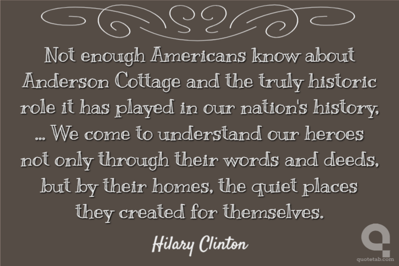 Not enough Americans know about Anderson Cottage and the truly historic role it has played in our nation's history, ... We come to understand our heroes not only through their words and deeds, but by their homes, the quiet places they created for themselves.