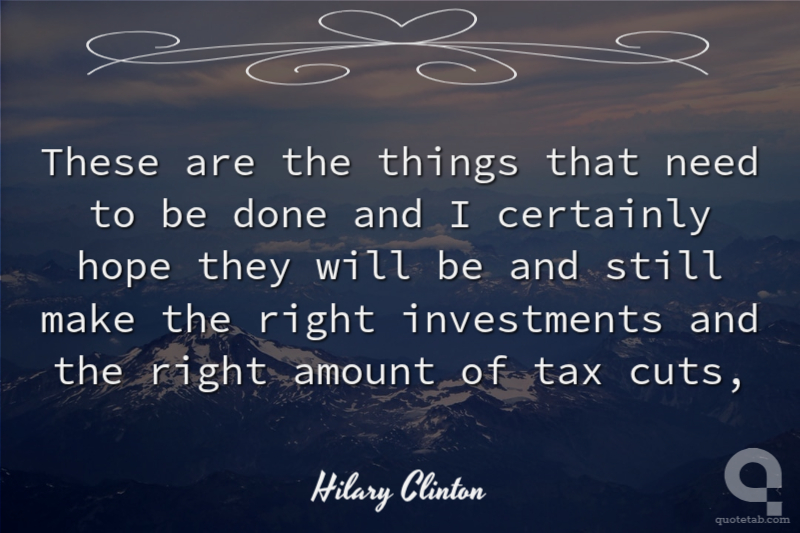 These are the things that need to be done and I certainly hope they will be and still make the right investments and the right amount of tax cuts,