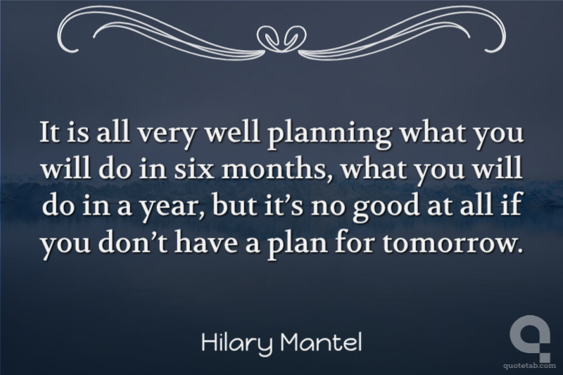 It is all very well planning what you will do in six months, what you will do in a year, but it’s no good at all if you don’t have a plan for tomorrow.