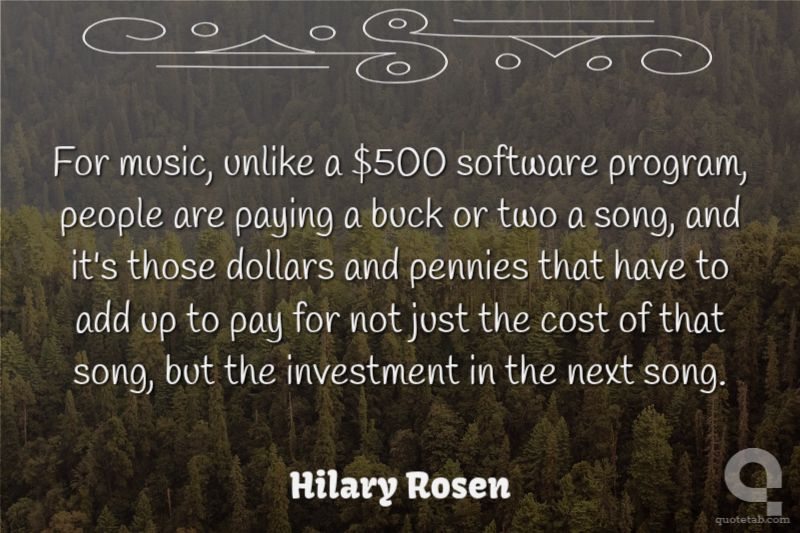 For music, unlike a $500 software program, people are paying a buck or two a song, and it's those dollars and pennies that have to add up to pay for not just the cost of that song, but the investment in the next song.
