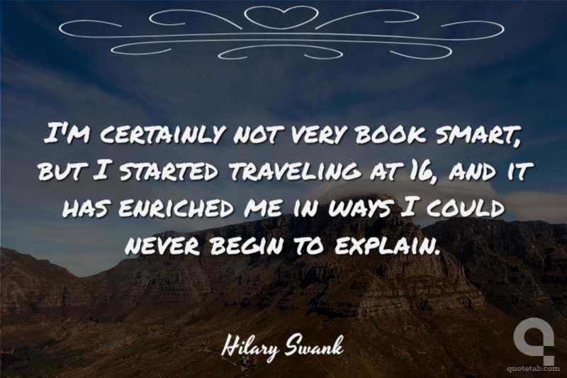 I'm certainly not very book smart, but I started traveling at 16, and it has enriched me in ways I could never begin to explain.