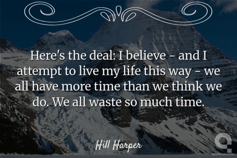 Here's the deal: I believe - and I attempt to live my life this way - we all have more time than we think we do. We all waste so much time.