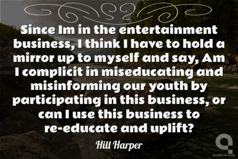 Since Im in the entertainment business, I think I have to hold a mirror up to myself and say, Am I complicit in miseducating and misinforming our youth by participating in this business, or can I use this business to re-educate and uplift?