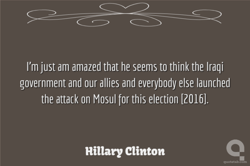 I'm just am amazed that he seems to think the Iraqi government and our allies and everybody else launched the attack on Mosul for this election [2016].