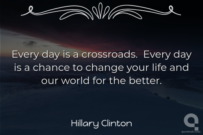 Every day is a crossroads. Every day is a chance to change your life and our world for the better.