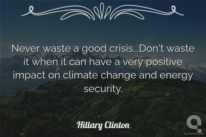 Never waste a good crisis...Don't waste it when it can have a very positive impact on climate change and energy security.