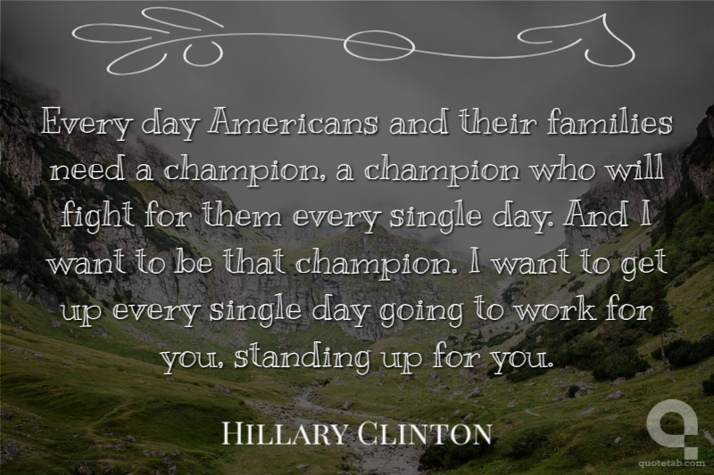 Every day Americans and their families need a champion, a champion who will fight for them every single day. And I want to be that champion. I want to get up every single day going to work for you, standing up for you.