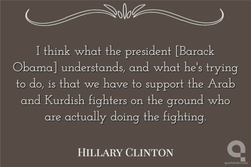 I think what the president [Barack Obama] understands, and what he's trying to do, is that we have to support the Arab and Kurdish fighters on the ground who are actually doing the fighting.