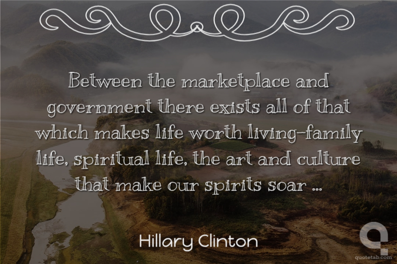 Between the marketplace and government there exists all of that which makes life worth living-family life, spiritual life, the art and culture that make our spirits soar ...