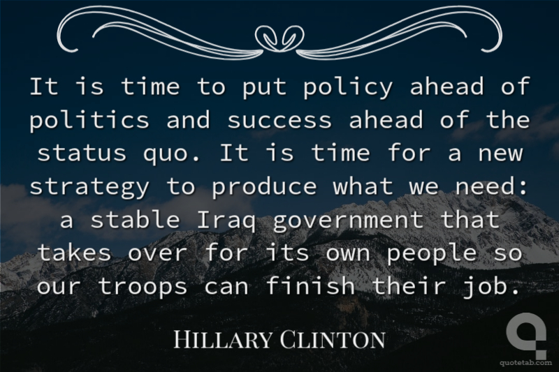 It is time to put policy ahead of politics and success ahead of the status quo. It is time for a new strategy to produce what we need: a stable Iraq government that takes over for its own people so our troops can finish their job.