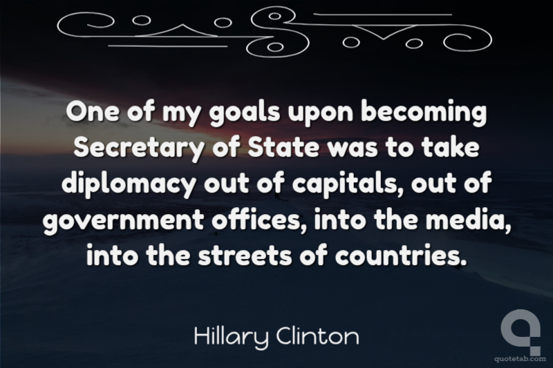 One of my goals upon becoming Secretary of State was to take diplomacy out of capitals, out of government offices, into the media, into the streets of countries.