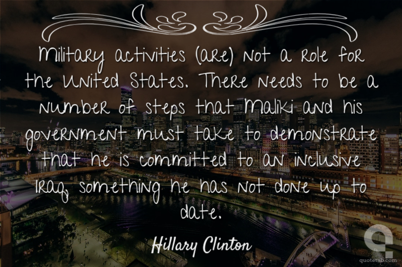 Military activities (are) not a role for the United States. There needs to be a number of steps that Maliki and his government must take to demonstrate that he is committed to an inclusive Iraq, something he has not done up to date.