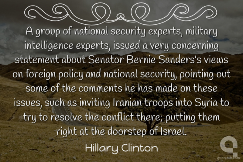 A group of national security experts, military intelligence experts, issued a very concerning statement about Senator Bernie Sanders's views on foreign policy and national security, pointing out some of the comments he has made on these issues, such as inviting Iranian troops into Syria to try to resolve the conflict there; putting them right at the doorstep of Israel.