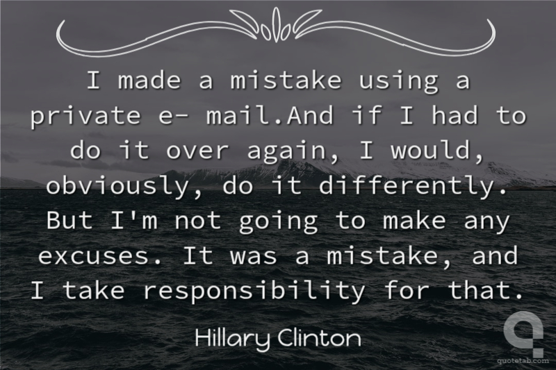 I made a mistake using a private e- mail.And if I had to do it over again, I would, obviously, do it differently. But I'm not going to make any excuses. It was a mistake, and I take responsibility for that.