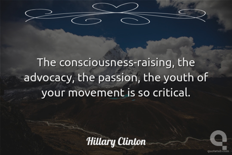 The consciousness-raising, the advocacy, the passion, the youth of your movement is so critical.