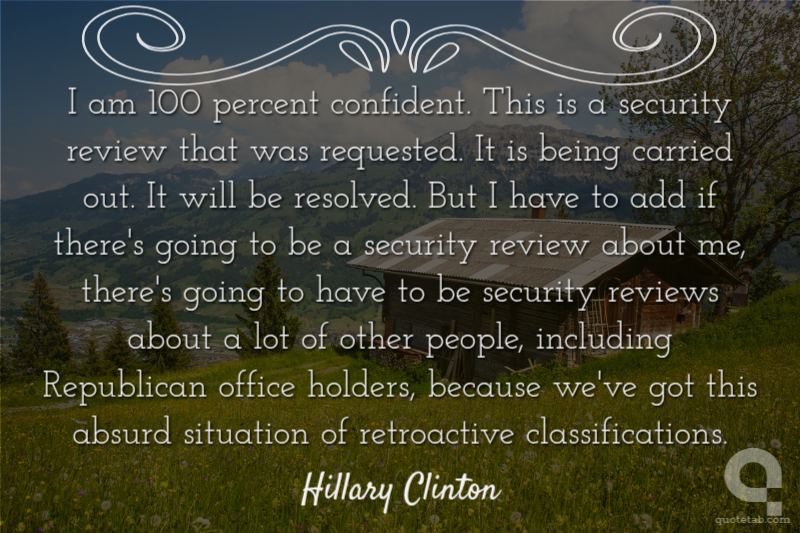I am 100 percent confident. This is a security review that was requested. It is being carried out. It will be resolved. But I have to add if there's going to be a security review about me, there's going to have to be security reviews about a lot of other people, including Republican office holders, because we've got this absurd situation of retroactive classifications.