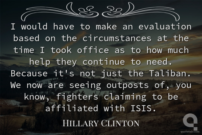 I would have to make an evaluation based on the circumstances at the time I took office as to how much help they continue to need. Because it's not just the Taliban. We now are seeing outposts of, you know, fighters claiming to be affiliated with ISIS.