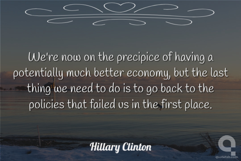 We're now on the precipice of having a potentially much better economy, but the last thing we need to do is to go back to the policies that failed us in the first place.