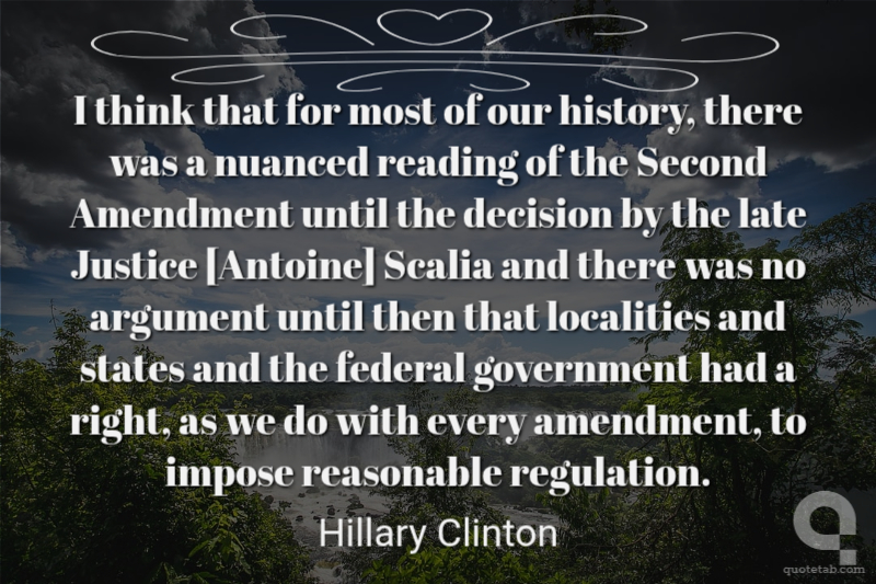 I think that for most of our history, there was a nuanced reading of the Second Amendment until the decision by the late Justice [Antoine] Scalia and there was no argument until then that localities and states and the federal government had a right, as we do with every amendment, to impose reasonable regulation.