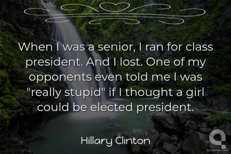 When I was a senior, I ran for class president. And I lost. One of my opponents even told me I was "really stupid" if I thought a girl could be elected president.