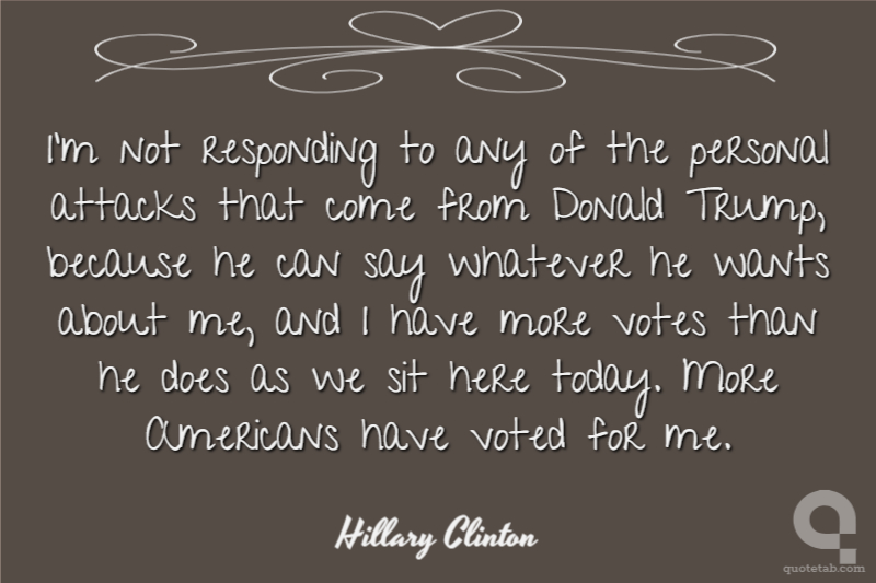 I'm not responding to any of the personal attacks that come from Donald Trump, because he can say whatever he wants about me, and I have more votes than he does as we sit here today. More Americans have voted for me.