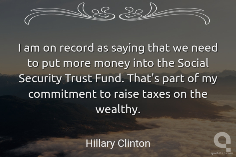 I am on record as saying that we need to put more money into the Social Security Trust Fund. That's part of my commitment to raise taxes on the wealthy.
