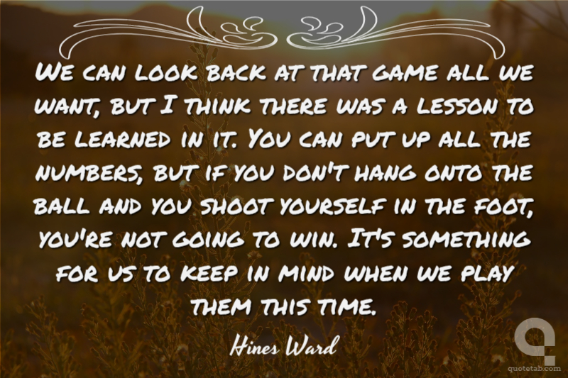 We can look back at that game all we want, but I think there was a lesson to be learned in it. You can put up all the numbers, but if you don't hang onto the ball and you shoot yourself in the foot, you're not going to win. It's something for us to keep in mind when we play them this time.