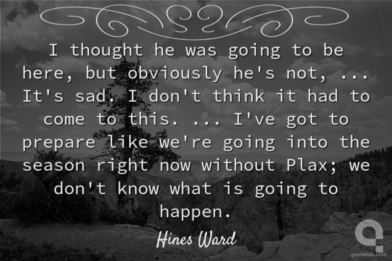 I thought he was going to be here, but obviously he's not, ... It's sad. I don't think it had to come to this. ... I've got to prepare like we're going into the season right now without Plax; we don't know what is going to happen.
