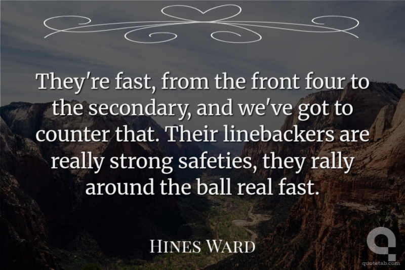 They're fast, from the front four to the secondary, and we've got to counter that. Their linebackers are really strong safeties, they rally around the ball real fast.