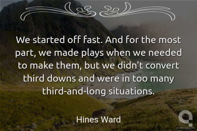 We started off fast. And for the most part, we made plays when we needed to make them, but we didn't convert third downs and were in too many third-and-long situations.