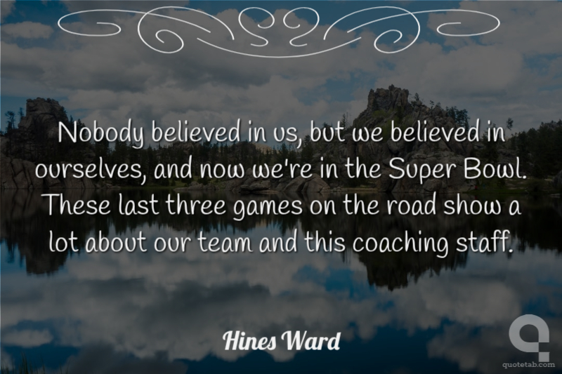Nobody believed in us, but we believed in ourselves, and now we're in the Super Bowl. These last three games on the road show a lot about our team and this coaching staff.