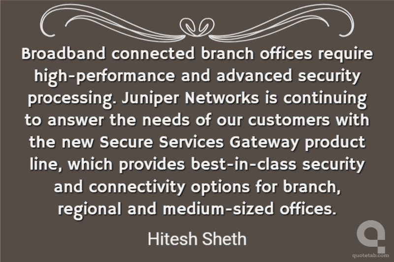 Broadband connected branch offices require high-performance and advanced security processing. Juniper Networks is continuing to answer the needs of our customers with the new Secure Services Gateway product line, which provides best-in-class security and connectivity options for branch, regional and medium-sized offices.