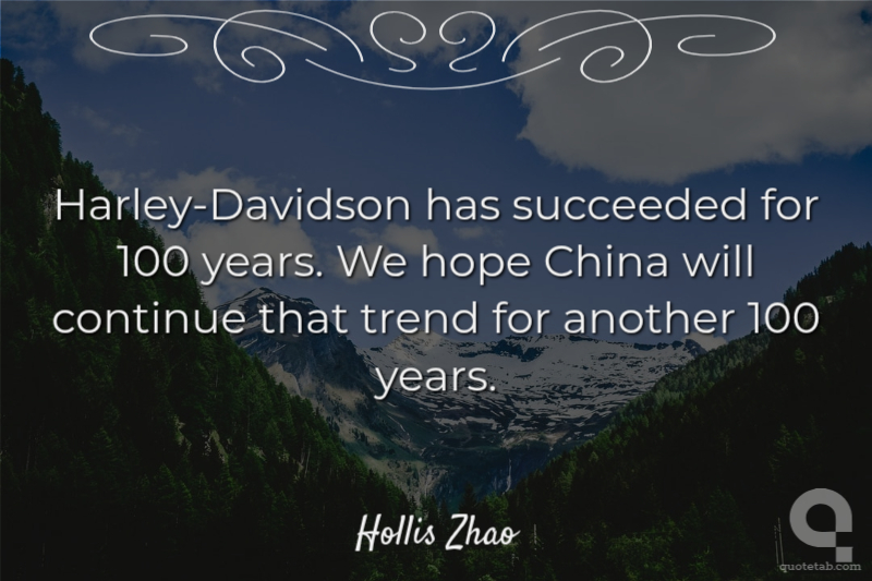 Harley-Davidson has succeeded for 100 years. We hope China will continue that trend for another 100 years.
