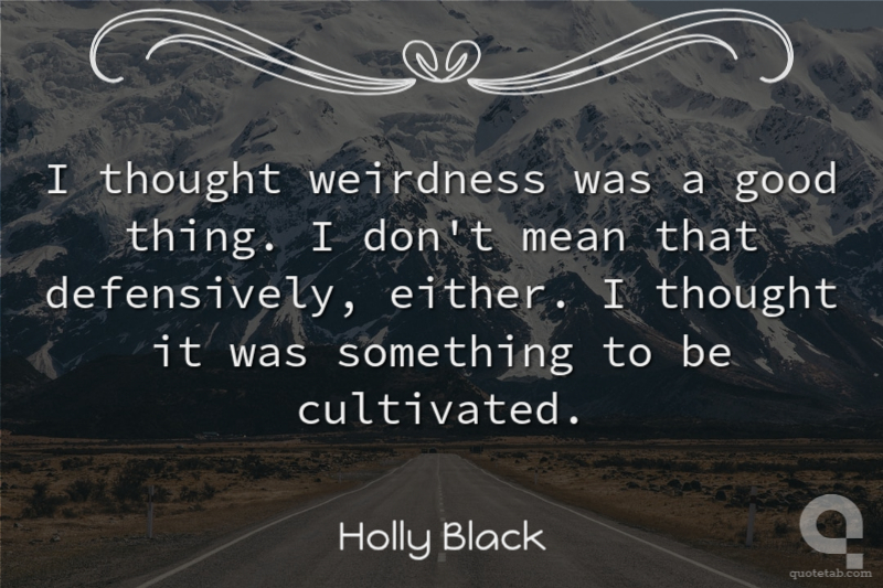 I thought weirdness was a good thing. I don't mean that defensively, either. I thought it was something to be cultivated.