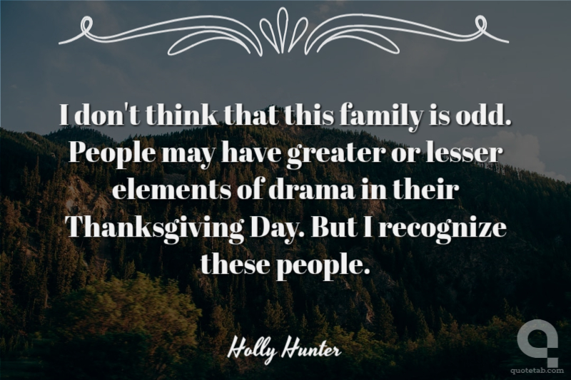 I don't think that this family is odd. People may have greater or lesser elements of drama in their Thanksgiving Day. But I recognize these people.
