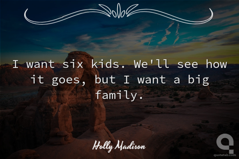 I want six kids. We'll see how it goes, but I want a big family.