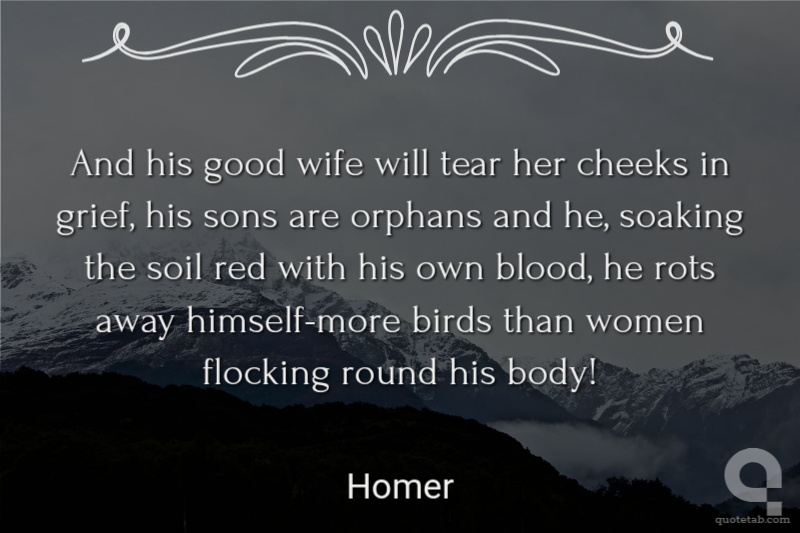 And his good wife will tear her cheeks in grief, his sons are orphans and he, soaking the soil red with his own blood, he rots away himself-more birds than women flocking round his body!
