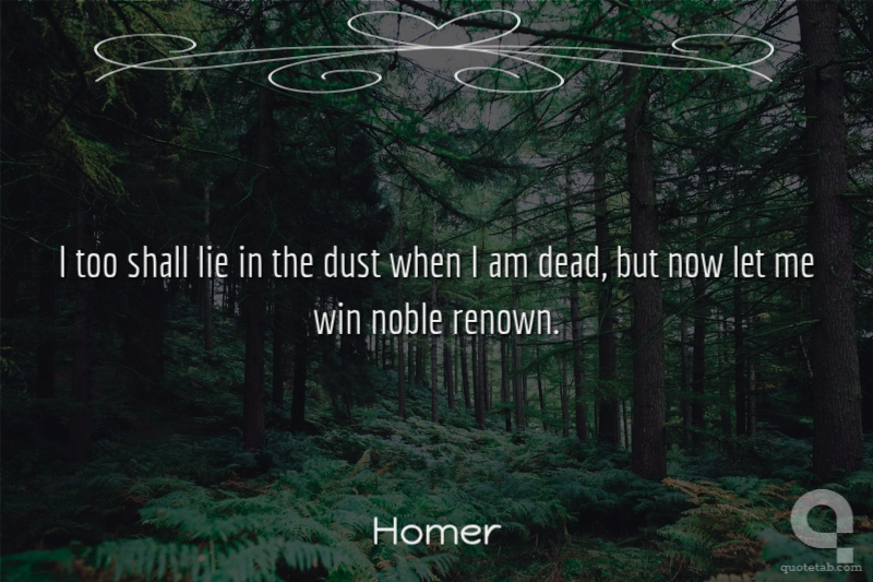 I too shall lie in the dust when I am dead, but now let me win noble renown.