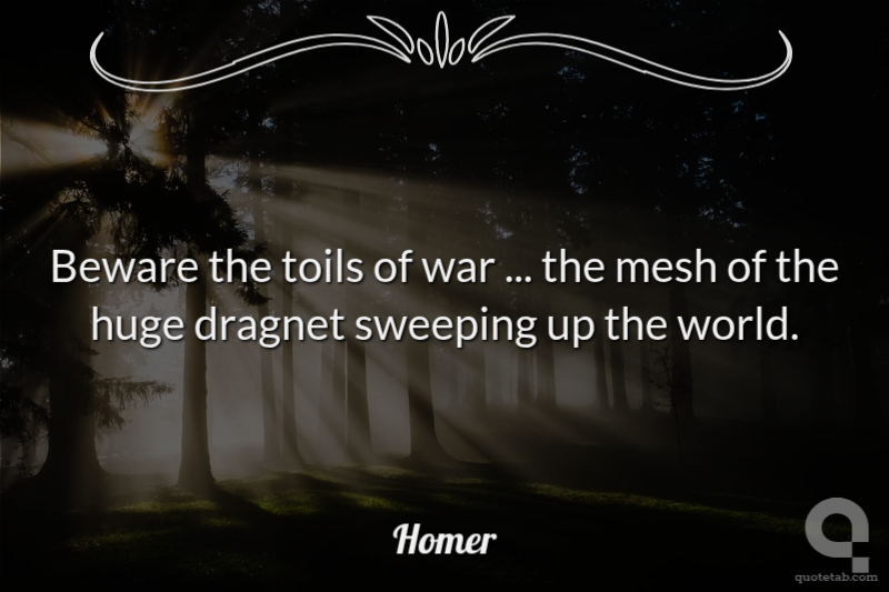 Beware the toils of war ... the mesh of the huge dragnet sweeping up the world.