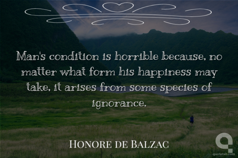 Man's condition is horrible because, no matter what form his happiness may take, it arises from some species of ignorance.