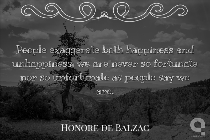 People exaggerate both happiness and unhappiness; we are never so fortunate nor so unfortunate as people say we are.